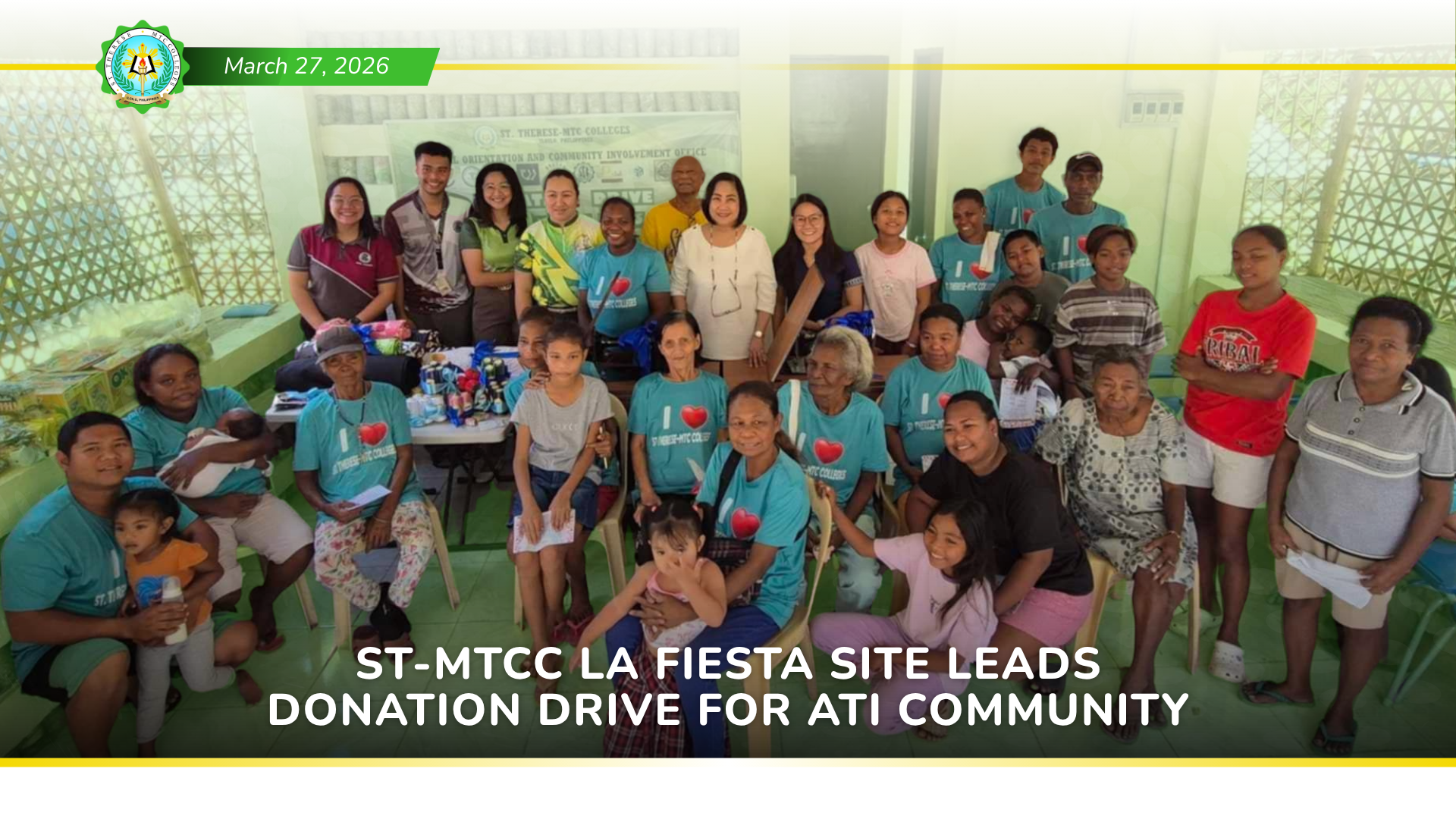 The Social Orientation and Community Involvement Office (SOCIO) of the La Fiesta Site successfully conducted a Donation Drive and Turnover for the ATI Community last March 23, 2026, at Brgy. Poblacion 1, Tigbauan, Iloilo. The activity embodied the true spirit of Bayanihan, bringing together administrators, faculty, students, and community partners in a unified effort to extend support to our indigenous brothers and sisters.