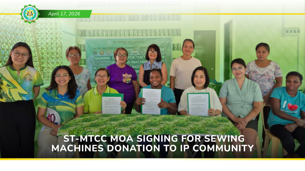A Memorandum of Agreement (MOA) signing between St. Therese – MTC Colleges and the Indigenous Peoples (IP) Community was held for the donation of sewing machines and sewing materials. This meaningful initiative seeks to provide the community with essential equipment and resources that can be used for income-generating activities while creating opportunities for skills development in sewing and related crafts. Through this partnership, the program aims to empower the IP community, encourage self-sufficiency, and contribute to sustainable economic growth. It also reflects the shared commitment of educational institutions, community leaders, and other stakeholders in building stronger collaborations that uplift communities through inclusive livelihood programs.